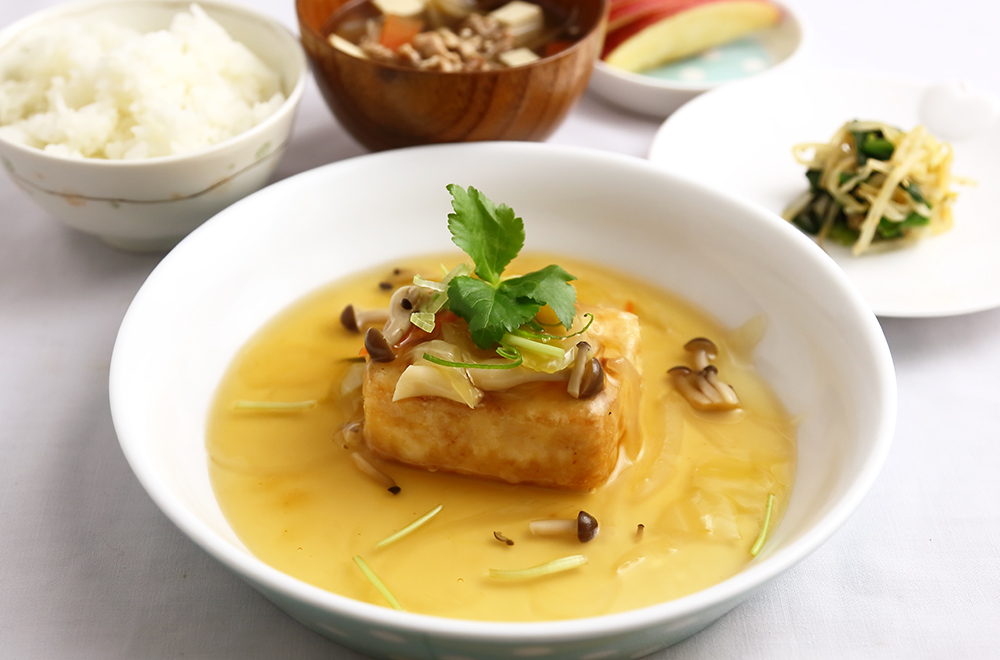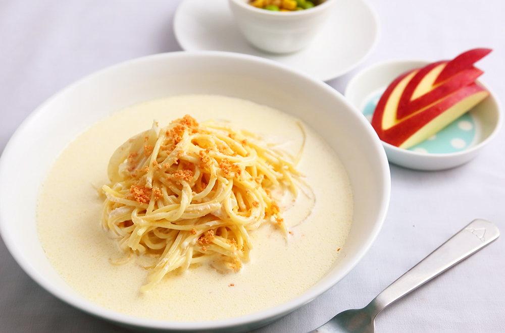 「医食同源」という言葉がある通り、日頃からバランスの取れた美味しい食事をすることは、子どもたちの病気を予防し、また治療にもつながります。当校では、管理栄養士が子どもたちのために、栄養素から食事量までしっかり計算し、旬の食材を多く使用し、季節を感じられるメニューを立案し、給食を準備します。